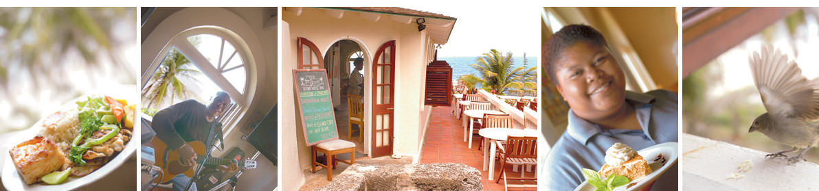Lunch at the Round House Restaurant & Inn included flying fish with rice, ground provisions (vegetables), macaroni pie, entertainment, local dessert, and of course, feeding feathered friends at the window. |