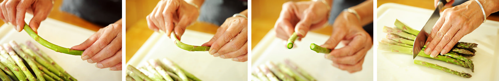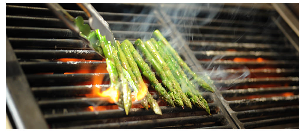 Prep the asparagus by snipping off the tough end of the base. Hold below the bud or top of the stalk and again on the base. Bend until it breaks. That is where you cut the remaining stalks. Lightly blanch the stalks, and cool immediately in ice water. Place in a plastic bag and coat with olive oil and your choice of herbs and seasonings. We used a simple combination of lemon zest, juice, salt and pepper. Set aside in refrigerator. | |||||||