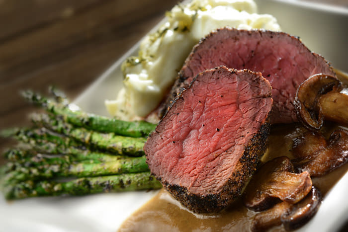 Whole tenderloin Coarse cracked black pepper Mushrooms Chicken broth Cream Kerrygold Irish butter Lea & Perrins Worcestershire sauce Light brown sugar |