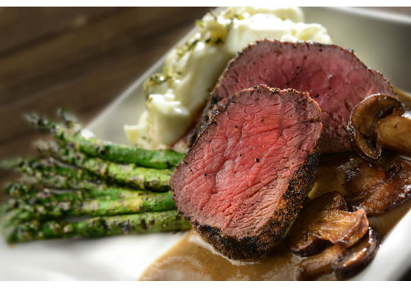 You're ready to plate! Slice the tenderloin and shingle two pieces against a dollop of potatoes. Add the mushroom sauce topped with a few crispy mushrooms. Place the asparagus and voilà, dinner is served. | ![]() |