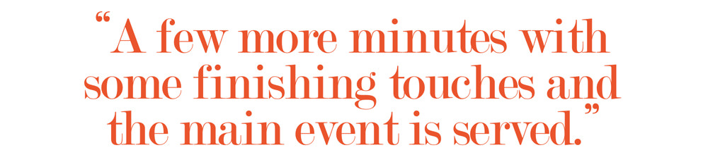 The main event is a show stopper. With a little careful planning, prepping and time management, this dish will come together right before your guests' eyes. The main course consists of four components: beef, potatoes, grilled asparagus and mushroom cream sauce. Each of these components can be prepped in advance, so the cooking portion becomes an easy and entertaining moment. | |||||||