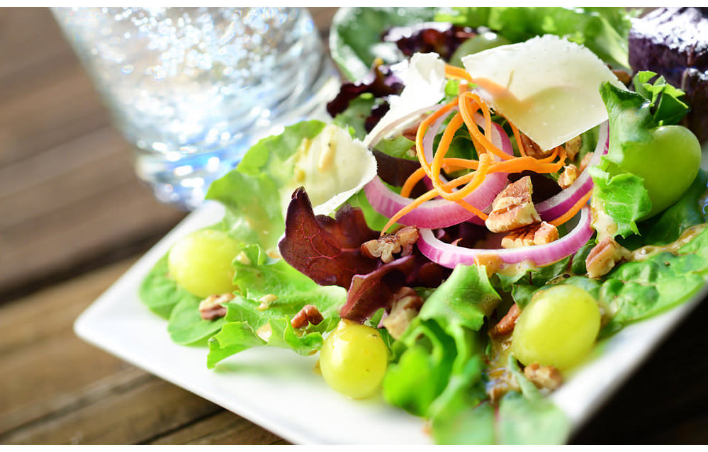 Fresh mixed baby greens Carrots Red onion Walnuts White grapes Aged parmesan cheese Olive oil Balsamic vinegar Eggs |