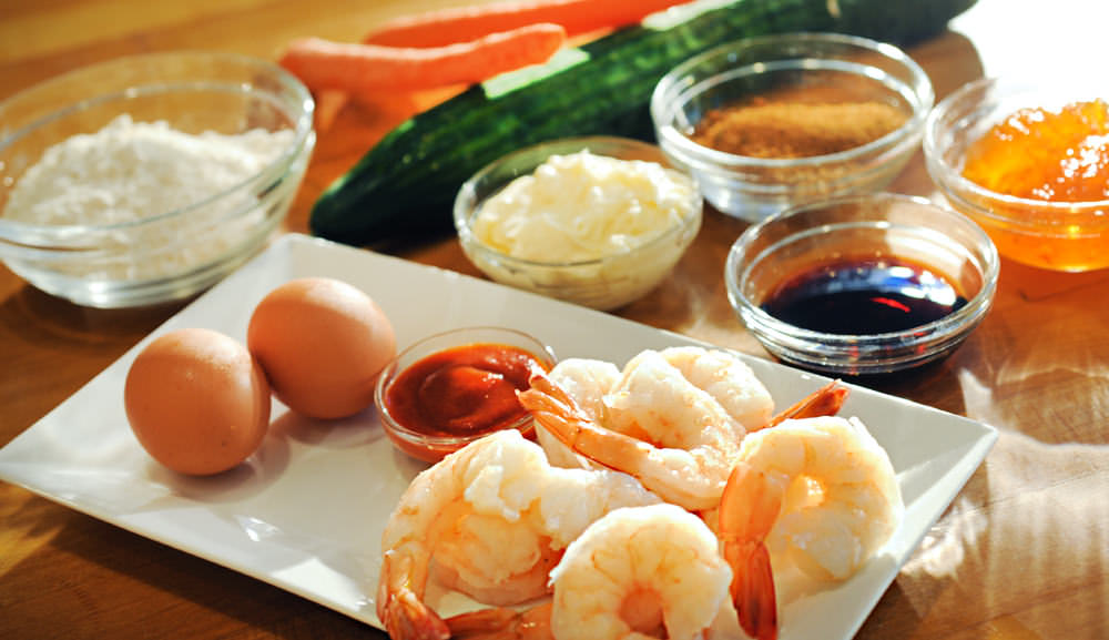 Jumbo Shrimp Blackening seasoning Orange marmalade Mayonnaise Sriracha Zucchini Whole carrots Corn meal Seasoning salt |