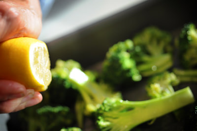 Start with a fresh broccoli bunch. Trim in sections, removing tough ends, and cut again lengthwise. Arrange in a baking pan. Give them a quick shot of fresh lemon juice, drizzle with olive oil, and toss until coated. Sprinkle on a generous helping of cracked red peppercorn saesoning, and roast for 12 to 18 minutes. Serve. |