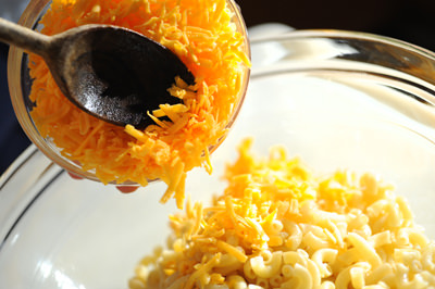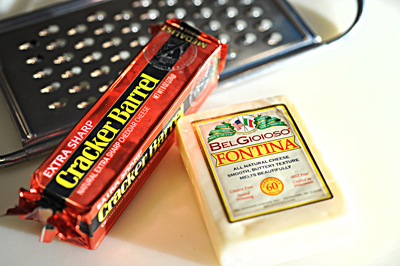 3. | Add equal parts of cheddar and fontina keeping about 1/4 aside for topping. |