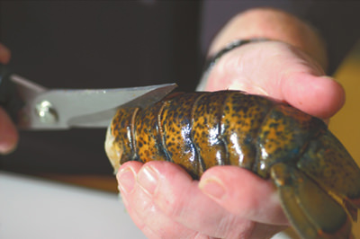 1. | Using a pair of kitchen shears, snip all ribs on the under side of the lobster. This allows the meat to be pulled from the shell easier. |
