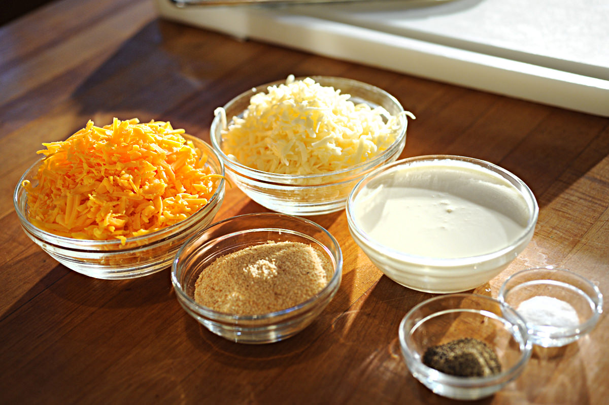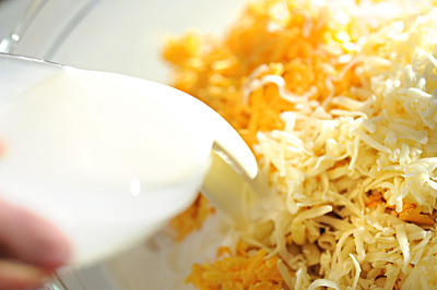 1. | Start with some decent cheese. We're using equal parts of cheddar and fontina, heavy cream, bread crumbs, salt and pepper. |